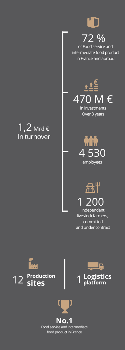 The LDC group, leader of french poultry in France, realised a turnover of 4,4 billion Euros and employs more than 22 700 people.